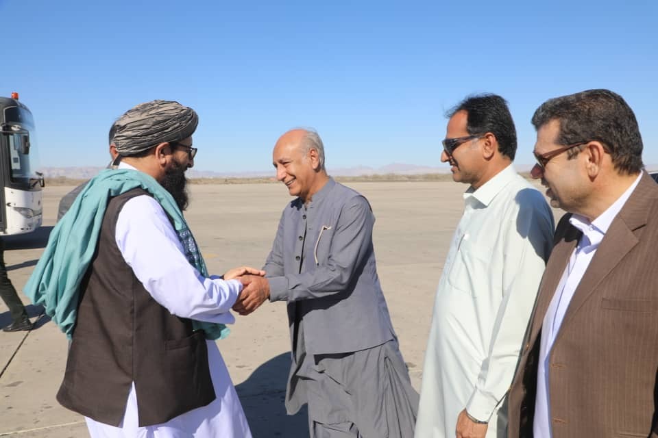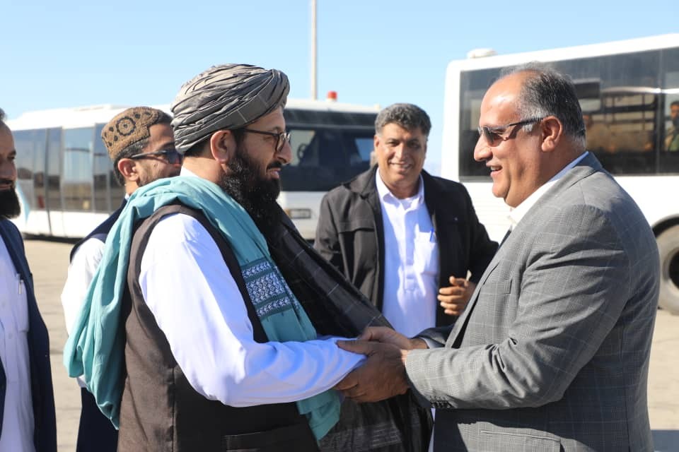 مولوی فضلمحمد حقانی سفیر افغانستان در ایران با استقبال دکتر محمدسعید اربابی رئیس هیأتمدیره و مدیرعامل سازمان منطقه آزاد چابهار وارد فرودگاه چابهار شد