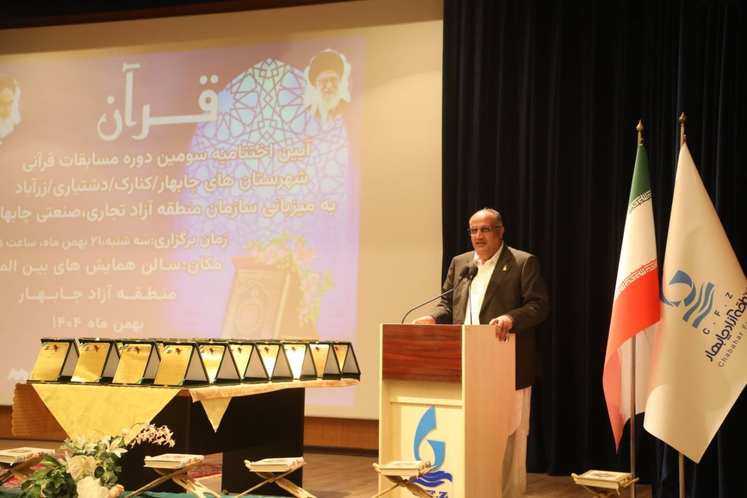 به گزارش روابط عمومی و امور بین‌الملل سازمان منطقه آزاد چابهار آیین اختتامیه و تجلیل از نفرات برتر سومین دوره مسابقات قرآنی شهرستان‌های چابهار، کنارک، دشتیاری و زرآباد با حضور دکتر محمد سعید اربابی، جمعی از مسئولان و مدیران شهرستانی، علما، حافظان و قاریان قرآن کریم، به میزبانی سازمان منطقه آزاد چابهار در سالن همایش‌های بین‌المللی این منطقه برگزار شد.