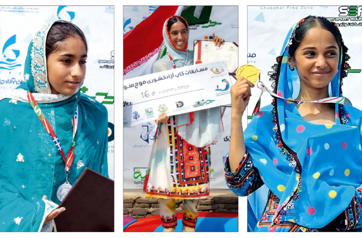 «من مقام دوم شورتبورد شدم. دو سال است که موجسواری را شروع کردهام. کلاس هفتم هستم، 13 ساله. خانوادهام اول مخالف بودند، خودم هم بههمیندلیل دنبال موجسواری نبودم اما دریا را دوست داشتم. بعد که پیش خانم قدمی رفتم کلاس زبان، دیدم دخترها میروند موجسواری، دریا. به مامانم گفتم، اما اجازه نداد بروم. گفت، ایشان را نمیشناسم. بعد، یکی از بچهها با مادرم حرف زد و اجازه داد و اولین مسابقهام را دادم و نفر دوم شدم. هماناول عموها و خالههایم مخالف بودند و میگفتند که دین ما اسلام است و نمیشود دخترها با پسرها بروند ساحل. اینجا دخترها را در سن پایین شوهر میدهند.